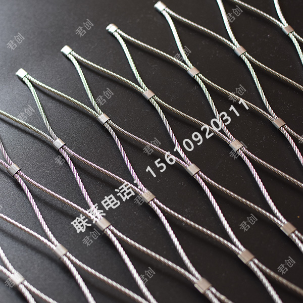 由優(yōu)質(zhì)不銹鋼繩和不銹鋼卡扣經(jīng)特殊工藝加工而成,外觀光亮、獨(dú)有線條、網(wǎng)格均勻、韌性好、美觀堅(jiān)固、高檔大方、實(shí)用性強(qiáng)、裝飾防護(hù)效果品著、用途廣泛,安裝簡(jiǎn)易,防護(hù)網(wǎng)首選材料。